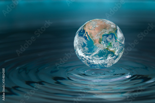 The watermark will not be included on Wall mural.: World dropping in a water drop ,concept for water pullation and conservative - elements of this image