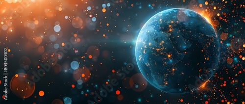 Wall mural world globe with bokeh effect and dark background. view on planet earth from space.