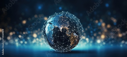 Wall mural : World globe with connected dots symbolizing global connection, communication and network -