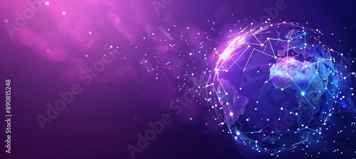 Wall mural world globe with connected dots symbolizing global connection, communication and network. planet ear
