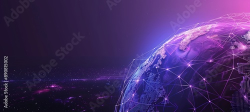 Wall mural : World globe with connected dots symbolizing global connection, communication and network - planet ear