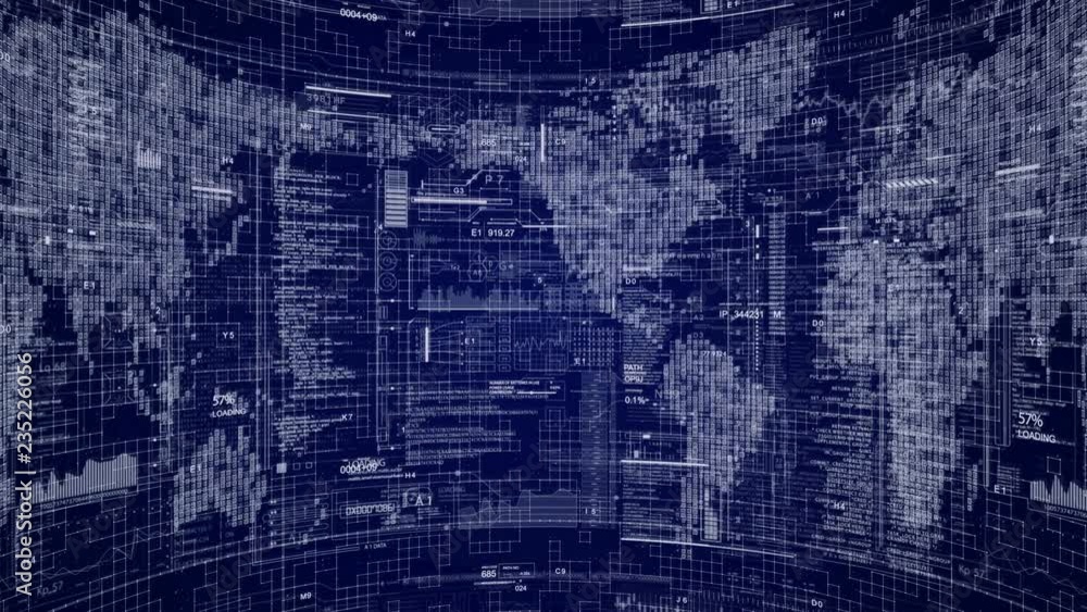 Wall mural world map and technological hud elements.seamless loop rotating animation.futuristic heads up displa - Wall murals Wall mural world map and technological hud elements.seamless loop rotating animation.futuristic heads up displa - Wall murals