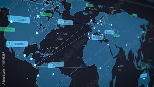 Wall mural world map logistics software with real-time data points and connections, optimizing global supply ch - Wall murals Wall mural world map logistics software with real-time data points and connections, optimizing global supply ch - Wall murals