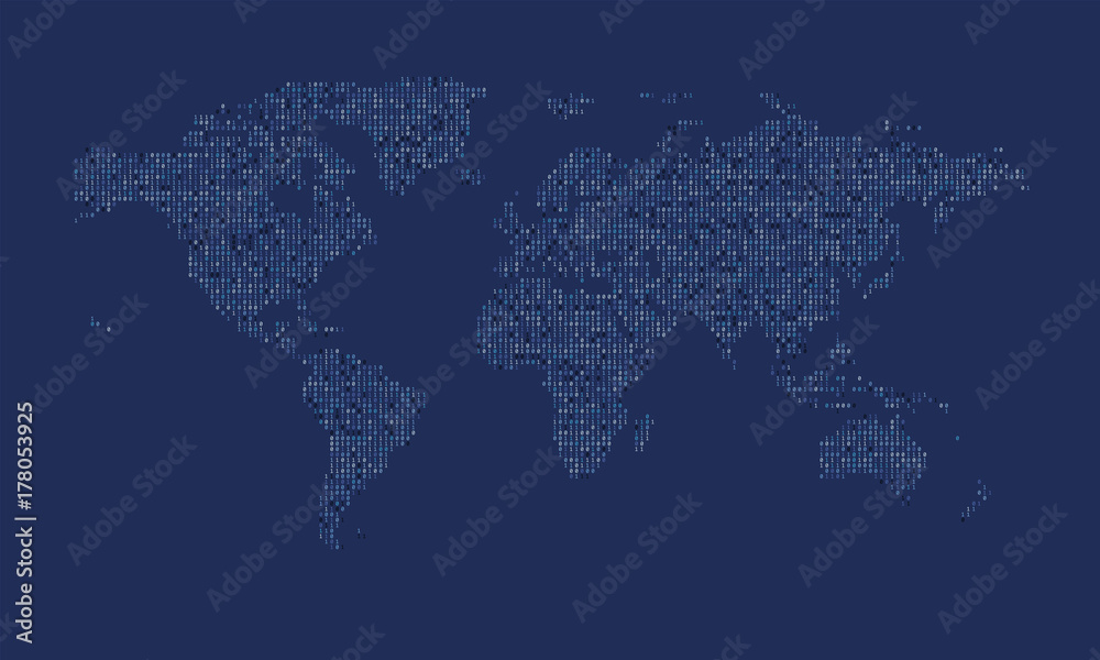 Wall mural world map made from binary data code - Wall murals Wall mural world map made from binary data code - Wall murals
