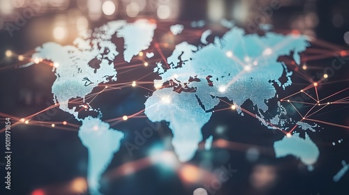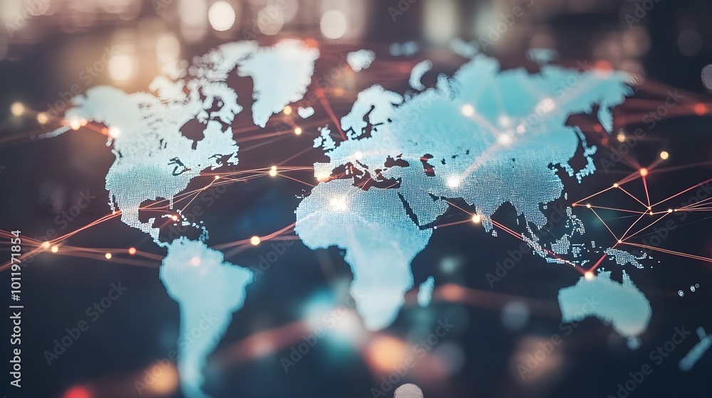 Wall mural : World map overlaid with interconnected lines symbolizing globalization
