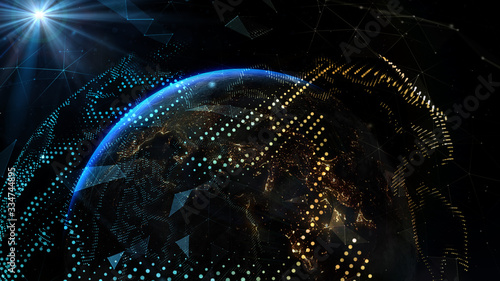 Wall mural : World map point - global network connection and telecommunication on earth - elements of this image fu