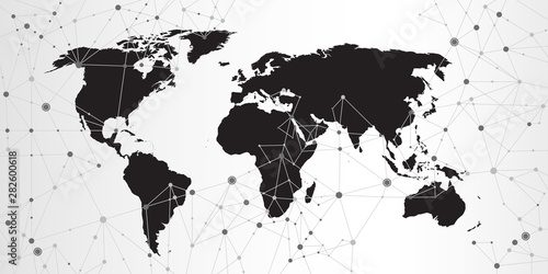 Wall mural world map triangle geometric connection background - Wall murals Wall mural world map triangle geometric connection background - Wall murals