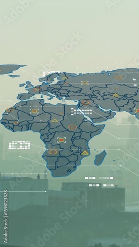 Wall mural world map with data points and network connections animation over cityscape - Wall murals Wall mural world map with data points and network connections animation over cityscape - Wall murals