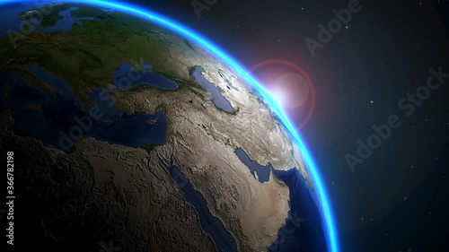 Wall mural world rotating on its axis in black universe in stars. view from space on planet earth. elements of