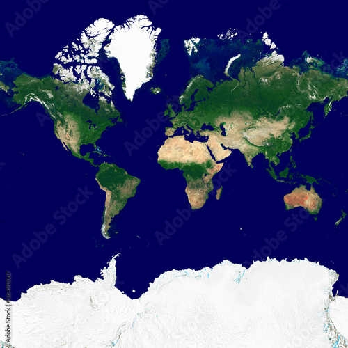 The watermark will not be included on Wall mural.: World texture in the web mercator projection - satellite image of the earth - high resolution texture