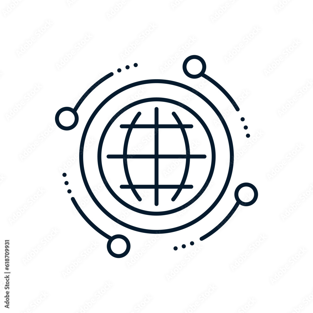 The watermark will not be included on Wall mural.: Worldwide computer network concept - vector linear icon isolated on white background -