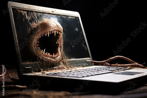 Wall mural worm virus attacking computer system, cyber attack ai generated