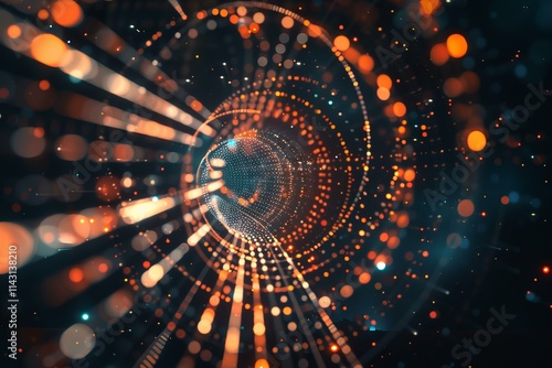 Wall mural wormhole tunnel effect is creating a data transfer visualisation with orange and blue lights on a da