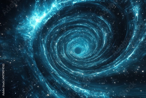 Wall mural : Wormhole tunnel with blue glowing nebula web in deep space, 3d wormhole tunnel blue glowing nebula w