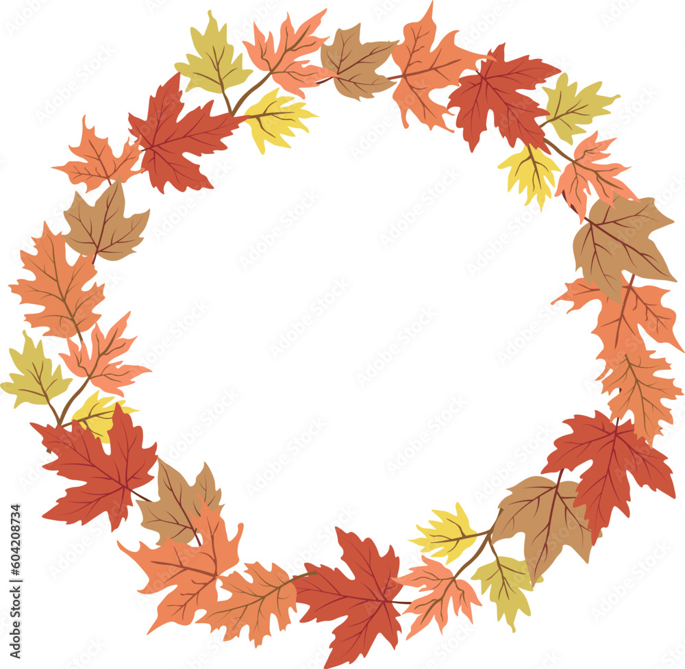 Wall mural : Wreath with autumn leaves in isolated background - vector illustration