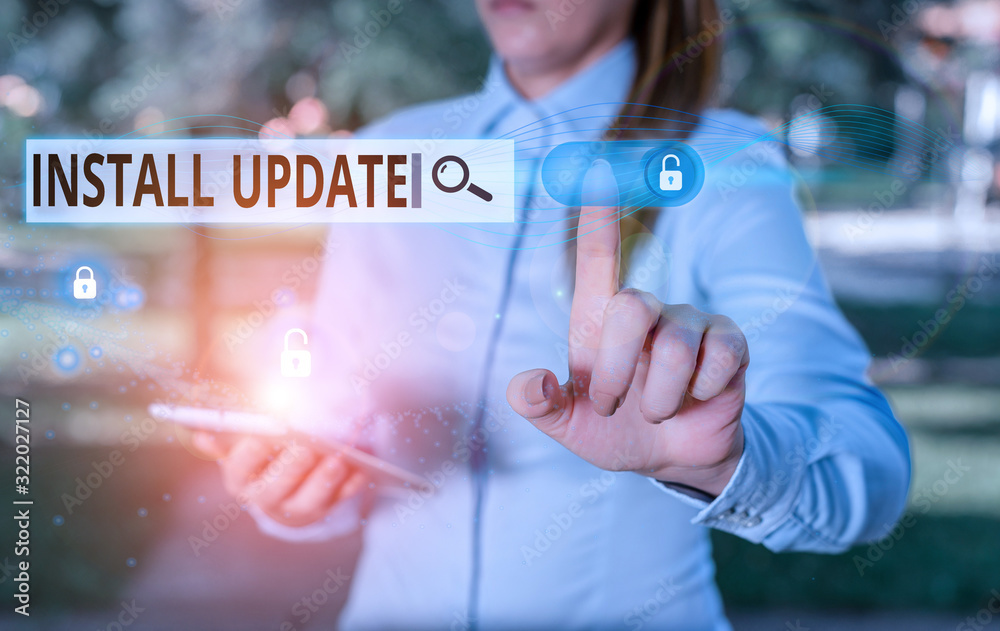 The watermark will not be included on Wall mural.: Writing note showing install update - business concept for the act of replacing an older version of t