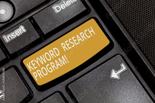 Wall mural : Writing note showing keyword research program - business photo showcasing fundamental practice in sea