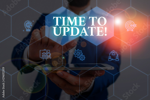 Wall mural writing note showing time to update. business concept for act updating something someone or updated  - Wall murals Wall mural writing note showing time to update. business concept for act updating something someone or updated - Wall murals