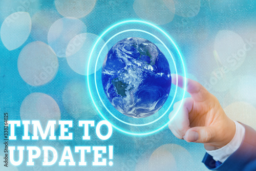 The watermark will not be included on Wall mural.: Writing note showing time to update - business concept for this is right moment to make something mor