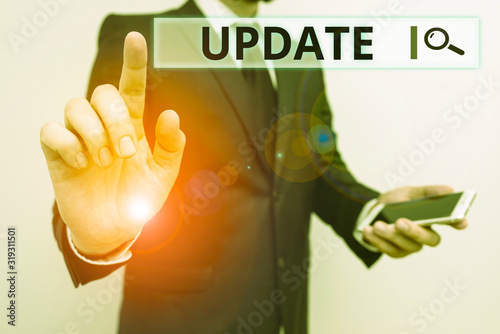 Wall mural : Writing note showing update - business concept for by adding new information or making corrections up