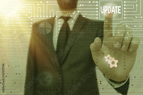 Wall mural : Writing note showing update - business concept for by adding new information or making corrections up