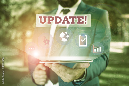 Wall mural writing note showing update. business concept for make something more modern or up to date like soft - Wall murals Wall mural writing note showing update. business concept for make something more modern or up to date like soft - Wall murals