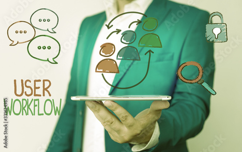 Wall mural : Writing note showing user workflow - business concept for orchestrated and repeatable pattern of busi