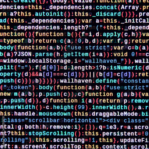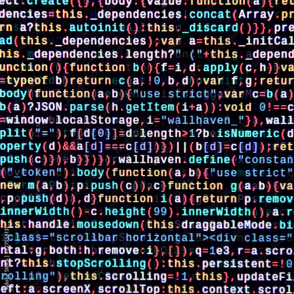 The watermark will not be included on Wall mural.: Writing programming code on laptop - digital binary data on computer screen