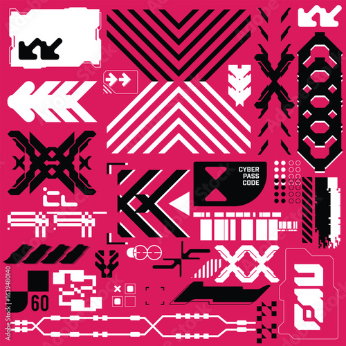 The watermark will not be included on Wall mural.: Y2k 2000s scifi cyberpunk retro-futuristic layout template set dashboard hud for ux-ui application,