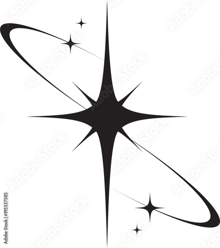 Wall mural y2k icon of star shape shiny glitter element. abstract retro minimal twinkles with cosmic orbit. min - Wall murals Wall mural y2k icon of star shape shiny glitter element. abstract retro minimal twinkles with cosmic orbit. min - Wall murals