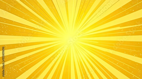 Wall mural : Yellow abstract background with light of sunburst - yellow starburst with halftone - sun ray retro bac