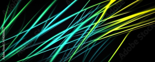 Wall mural : Yellow and green glowing lines on a black background form an abstract neon design - this high-tech co