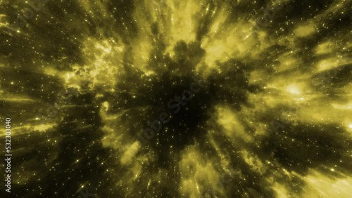 The watermark will not be included on Wall mural.: Yellow and red background - motion - light streams of light in space with white stars on a black backg