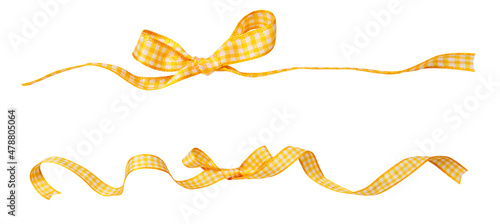Wall mural yellow check ribbon curl isolated on white background. yellow plaid ribbon bow and curl isolated on  - Wall murals Wall mural yellow check ribbon curl isolated on white background. yellow plaid ribbon bow and curl isolated on - Wall murals