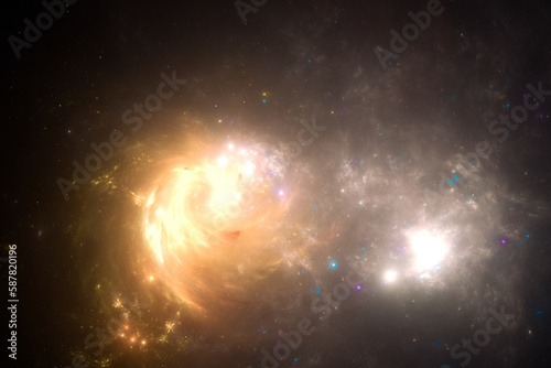 Yellow clouds of stardust in black space - abstract fractal 3d renderingWall mural