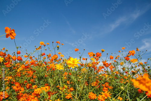 The watermark will not be included on Wall mural.: Yellow cosmos flower in garden