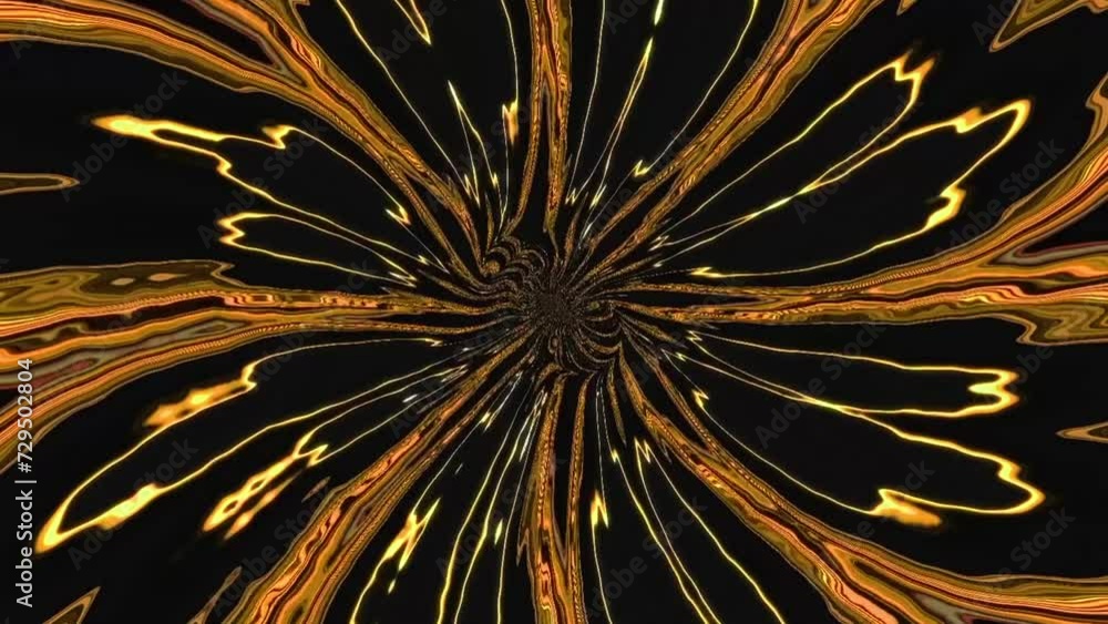 The watermark will not be included on Wall mural.: Yellow fractal floral shape abstract design flowing on black - simple loop able animation