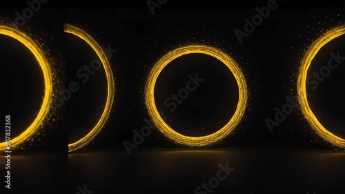 Wall mural yellow glowing circle abstract in black background copy space design