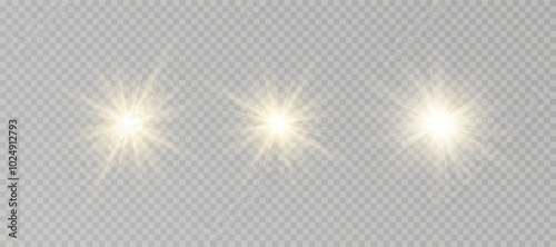 Yellow glowing light explodes on a transparent background - sparkling magical dust particles - bright Wall mural