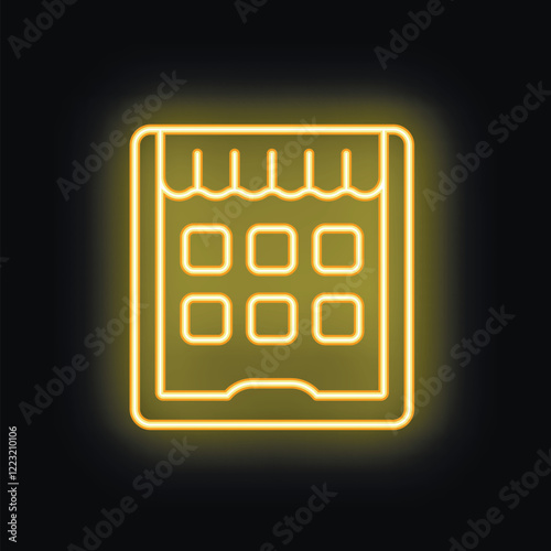 The watermark will not be included on Wall mural.: Yellow glowing neon sign representing a smartphone showing an app interface with buttons, on a dark