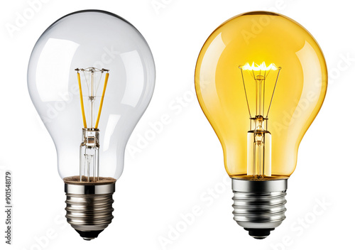Yellow light bulb in switch off and switch on state isolated on a transparent background, innovationWall mural