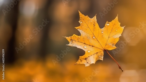Wall mural : Yellow maple leaf close up on blurred background - generative ai -