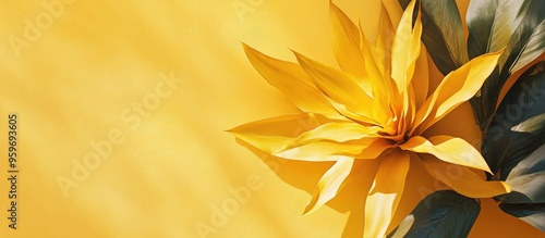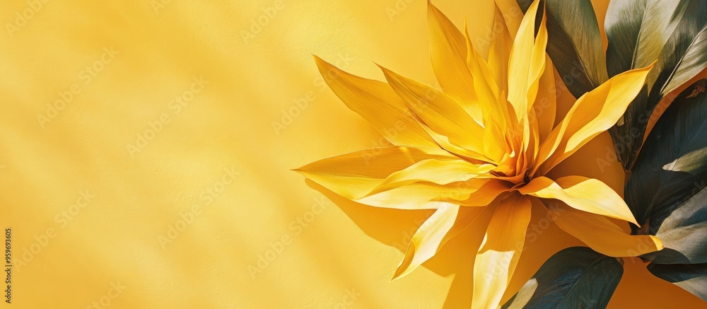 The watermark will not be included on Wall mural.: Yellow plant from a top view with sunlight - with copy space image - place for adding text or design