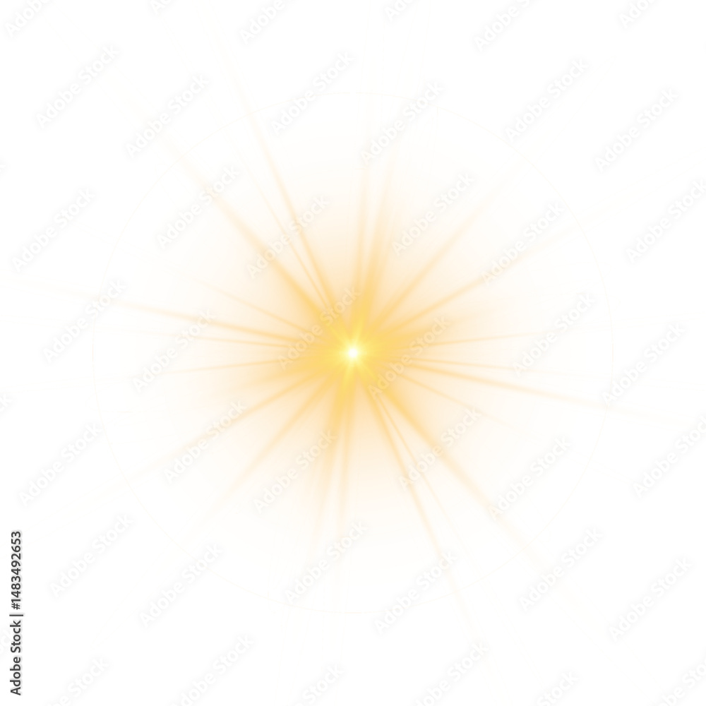 Wall mural yellow sun, a flash, a soft glow without departing rays. star flashed with sparkles isolated on whit