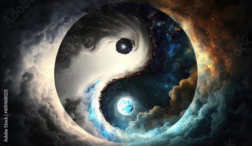 Wall mural : Yin yang symbol with yin yang, creation of cosmos, duality in the universe, life is birthing - concep