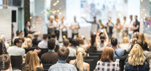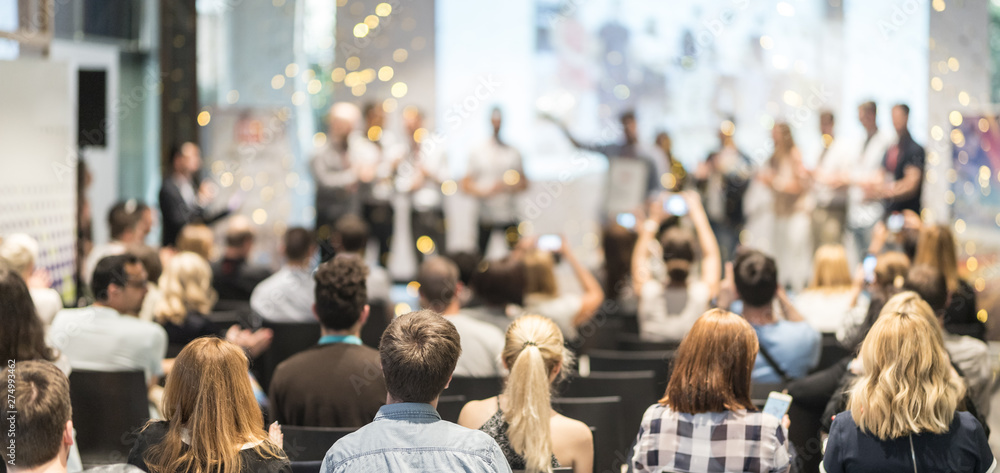 Wall mural : Young business team receiving award prize at best business project competition event - business and e