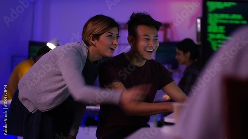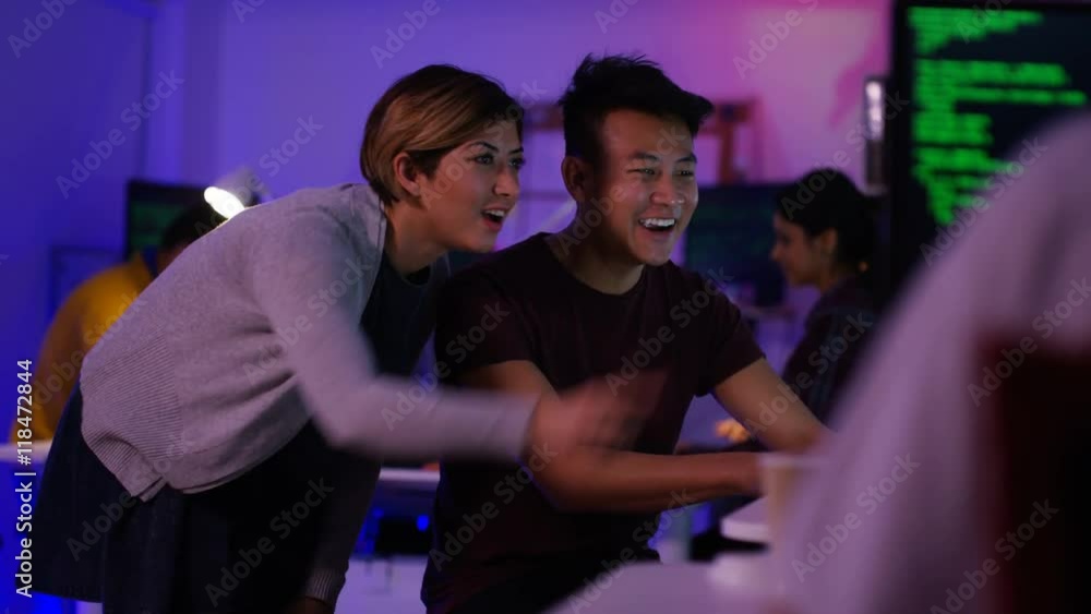 The watermark will not be included on Wall mural.: Young computer experts working in office with lots of computers
