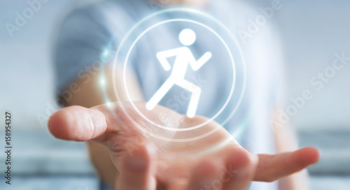 Wall mural young man using running application to check his performances 3d rendering - Wall murals Wall mural young man using running application to check his performances 3d rendering - Wall murals