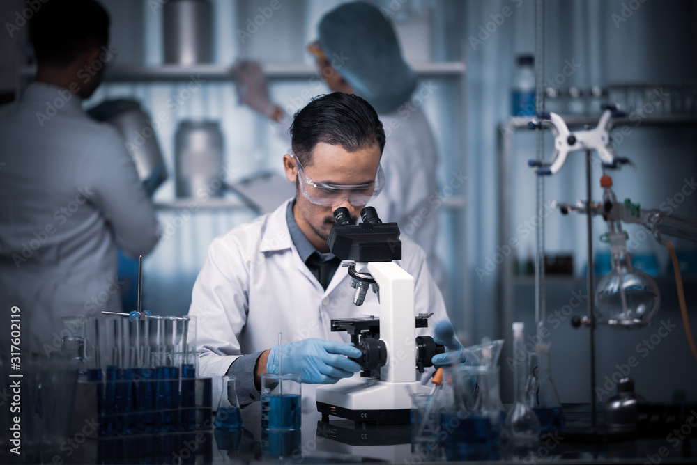 The watermark will not be included on Wall mural.: Young scientist working with a microscope in a laboratory - young scientist doing some research -