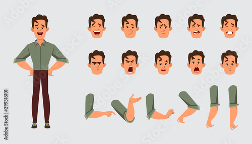 Wall mural young smart boy character with different facial expression and hand poses. animation character model